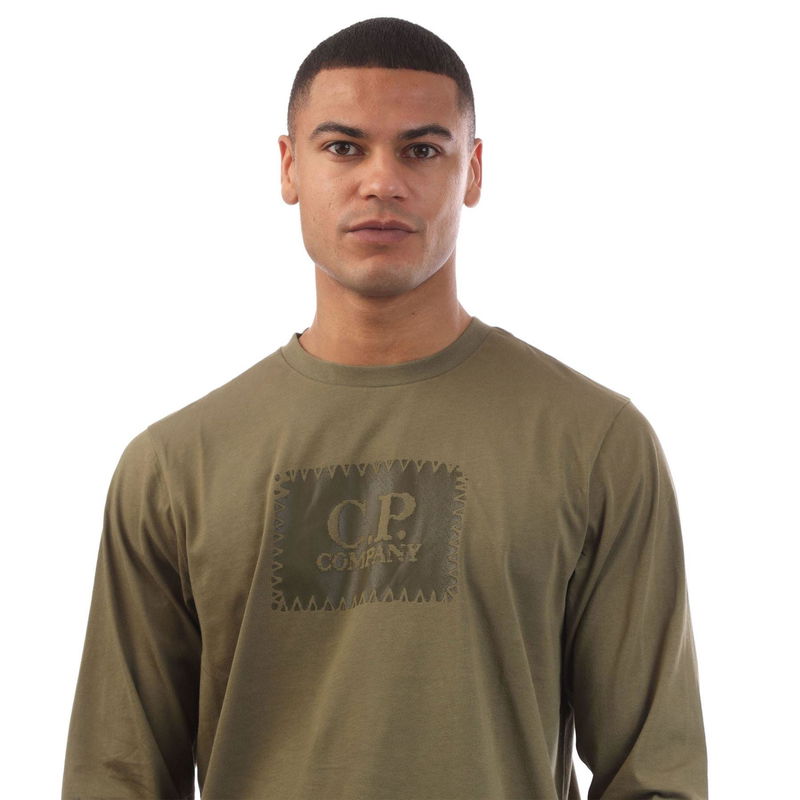 Mens C.P. Company 30-1 Jersey Logo T-Shirt in green. Crewneck. Long sleeves. C.P. Company logo at the chest. Regular fit.