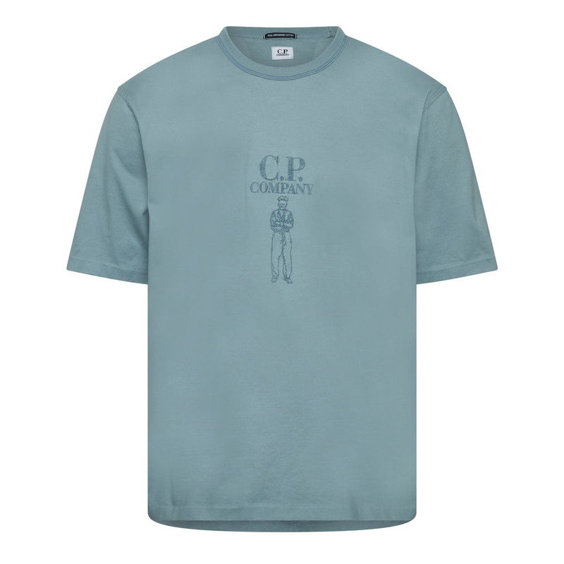 Mens C.P. Company 30-2 Jersey Twisted Logo T- Shirt in blue.