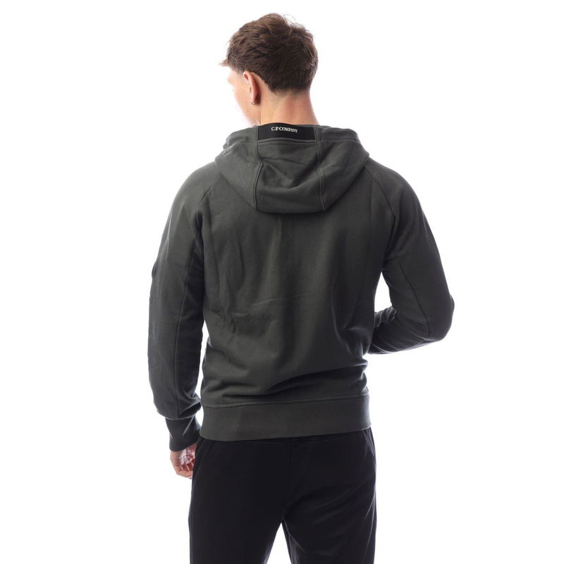 Mens C.P. Company Diagonal Raised Fleece Lens Full-Zip Hoodie in grey. Adjustable hood with embroidered logo detail. Full zip fastening. Side zip pockets. Thumb hole on cuffs. Ribbed cuffs and hem. Sleeve zip pocket with Lens detail. Regular fit.