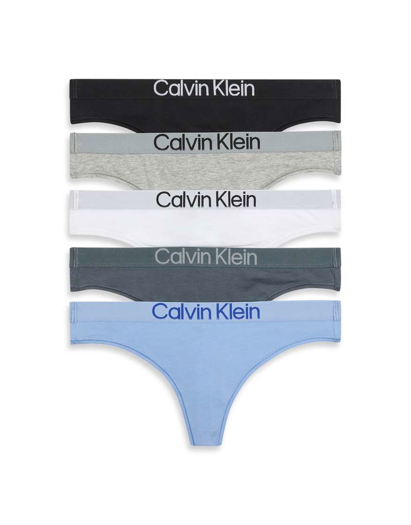 Ck Cotton 5 Pack Thongs In Black/gray/white/blue