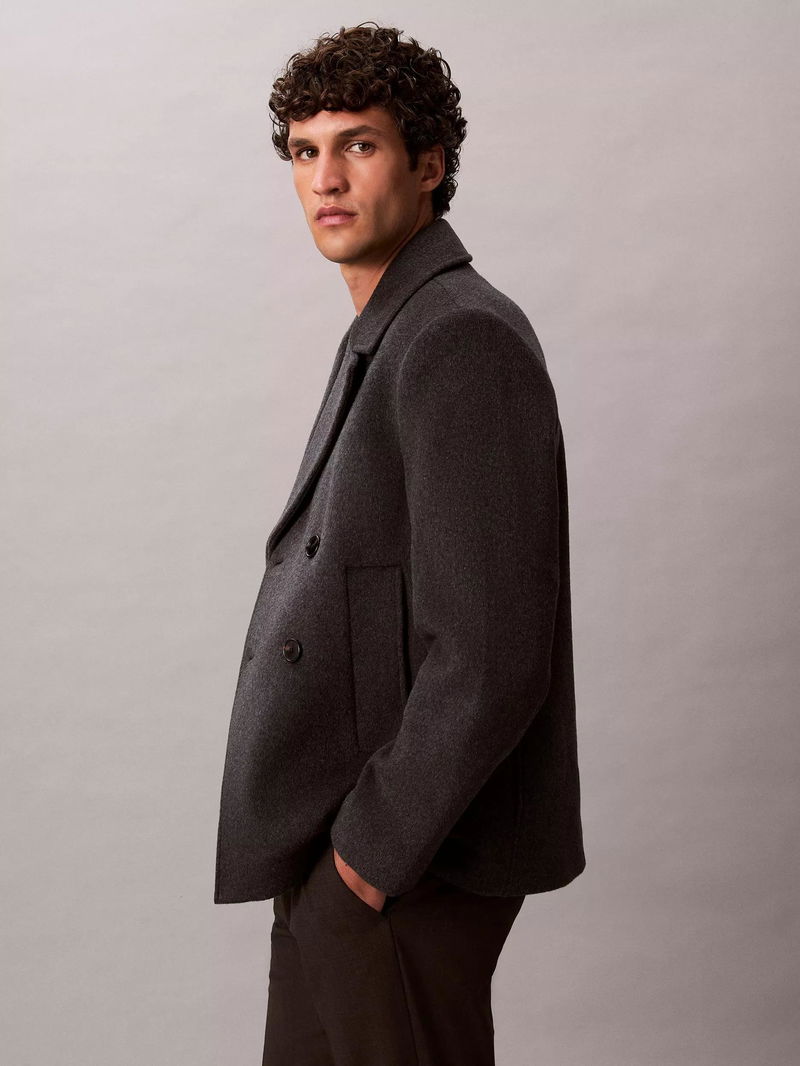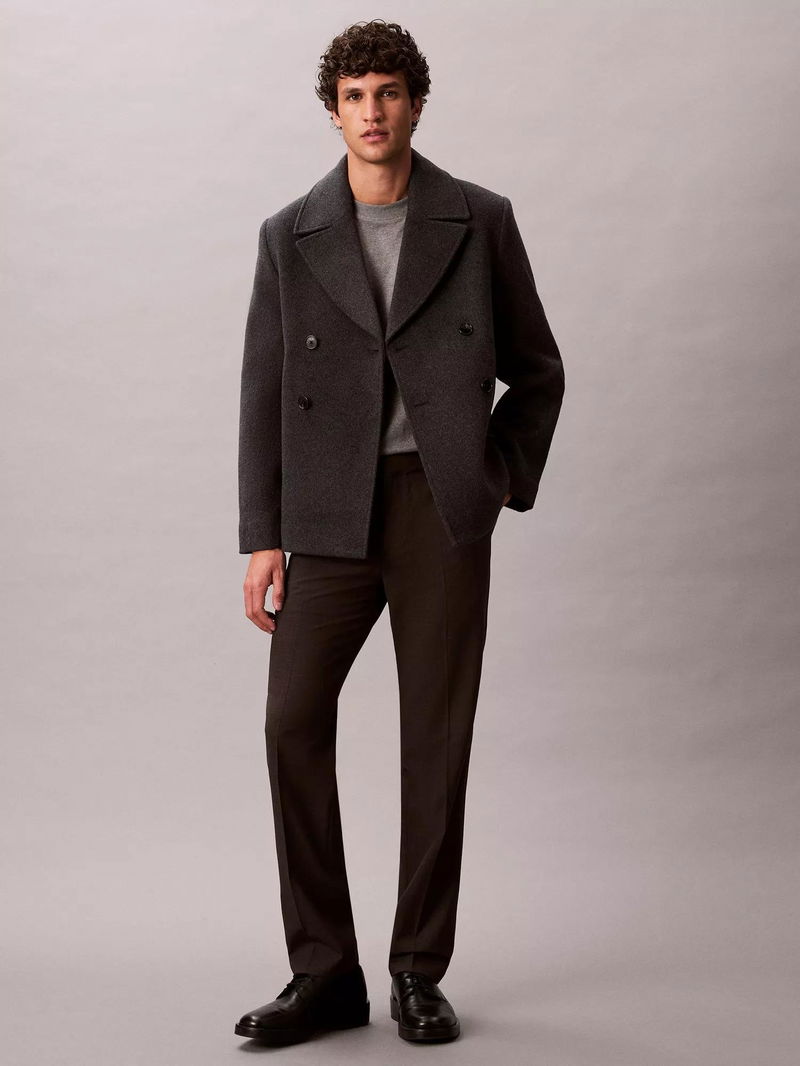 Double-breasted peacoat from Calvin Klein's collection of refined classics for a curated wardrobe. Minimalist essentials in signature silhouettes.