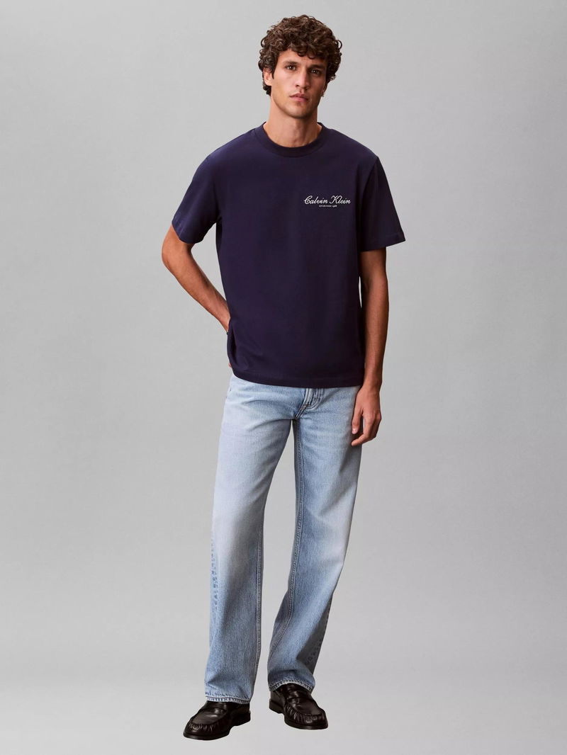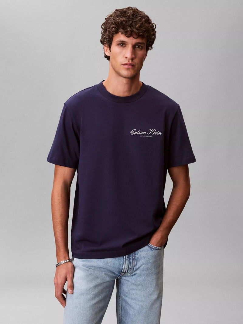 Crew neck tee with Calvin Klein script embroidery on the chest. Made from soft cotton jersey for breathable comfort, in an easy, more relaxed fit.