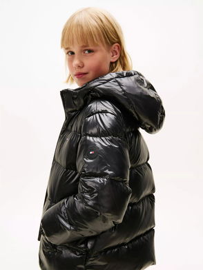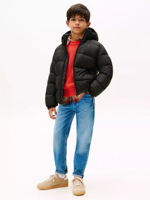 Calvin Klein Jeans' essential down jacket is the perfect layer for your little one. Made with robust recycled fabric, the quilted design features a hood, ribbed cuffs and full zip and rip-tape front for easy fastening. Finished with iconic branding detailing.