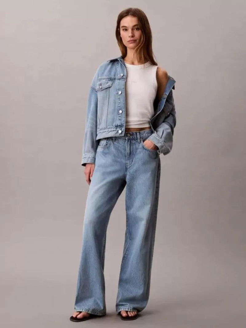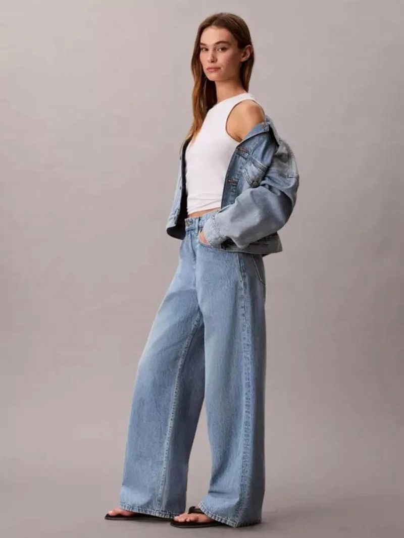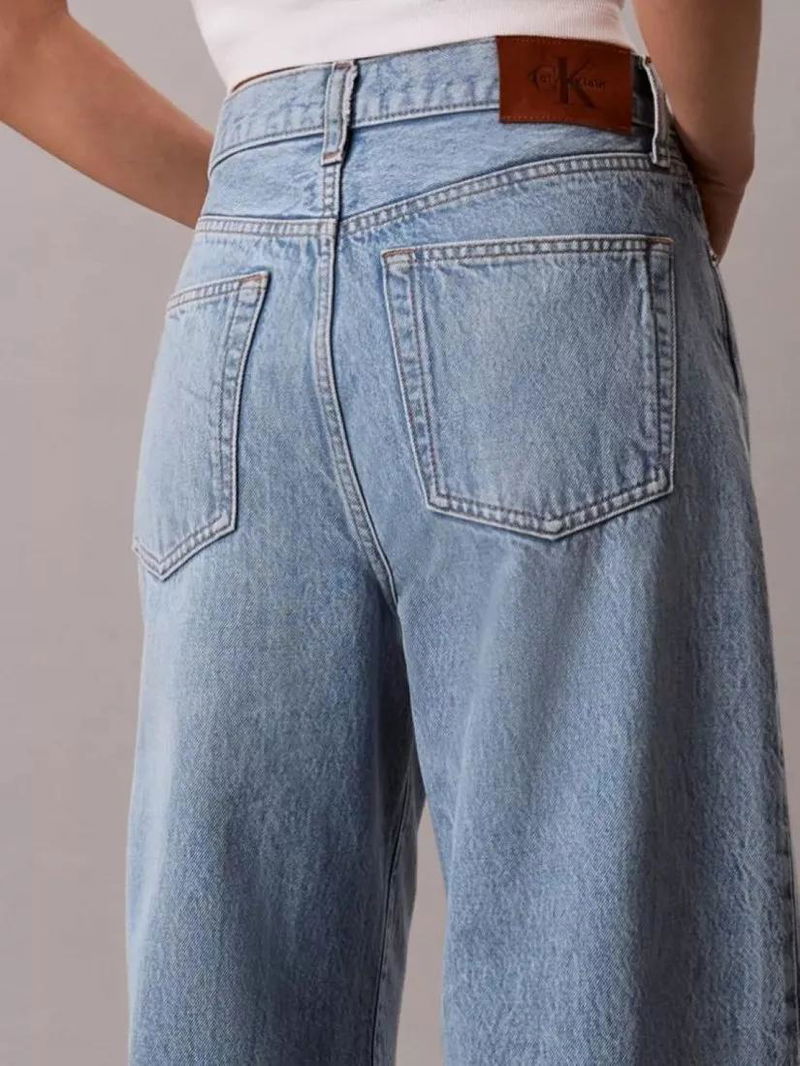 A pair of wide leg jeans from Calvin Klein. Designed for all day-comfort in cotton, they feature a mid rise, a button and zip fly and longer-length hems.