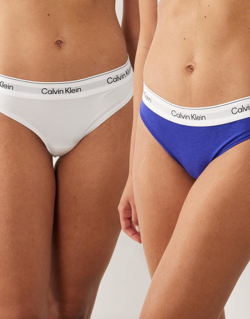Icon Cotton Modal 2 Pack Thongs In White/blue