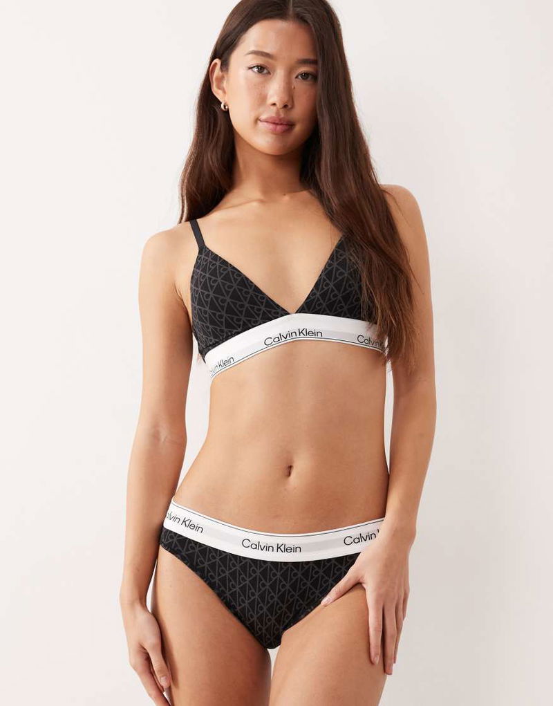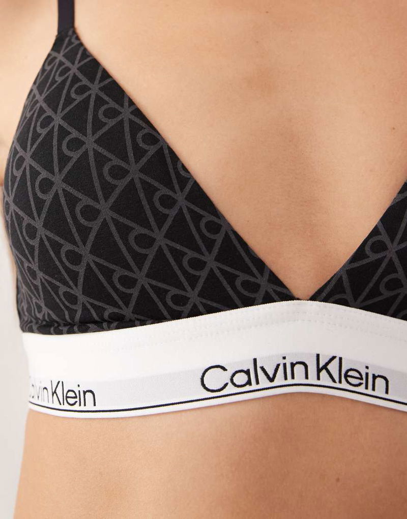 Icon Cotton Modal Lightly Lined Triangle Bra In Gray Emblem Print