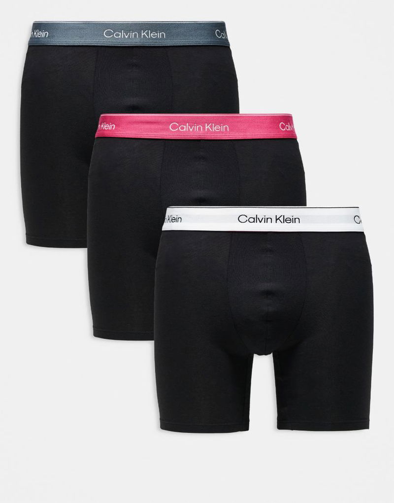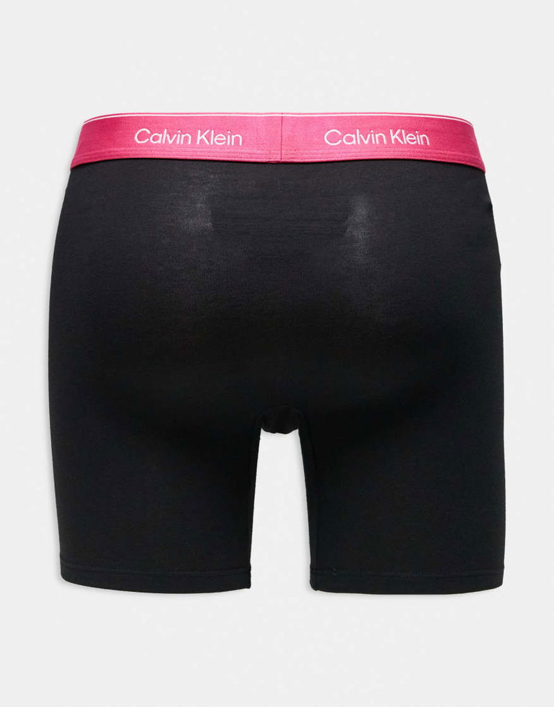 Icon Cotton Stretch 3 Pack Boxer Briefs In Black With Pink/blue/white Waistbands