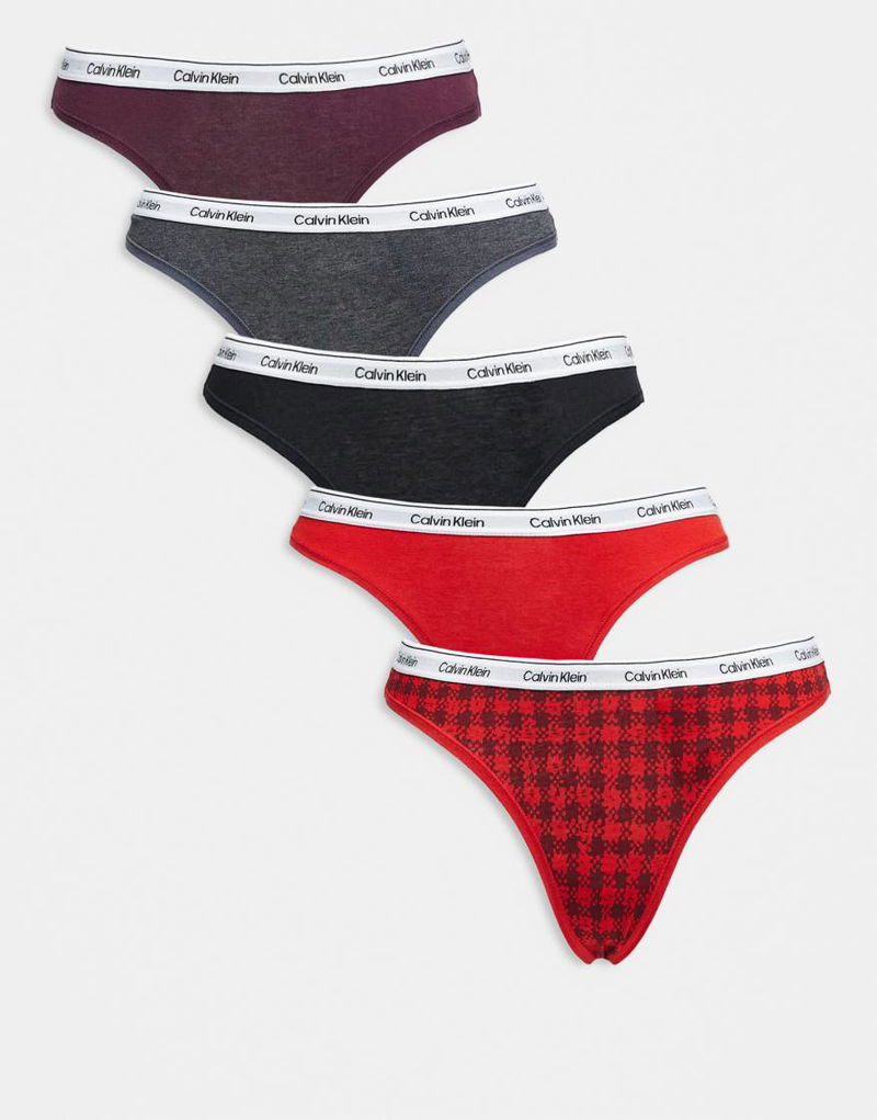 Icon Logo 5 Pack Thongs In Black/gray/burgundy/red Tartan Plaid