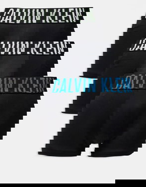 Intense Power 3 Pack Cotton Boxer Briefs In Black With Gray Logo Waistbands