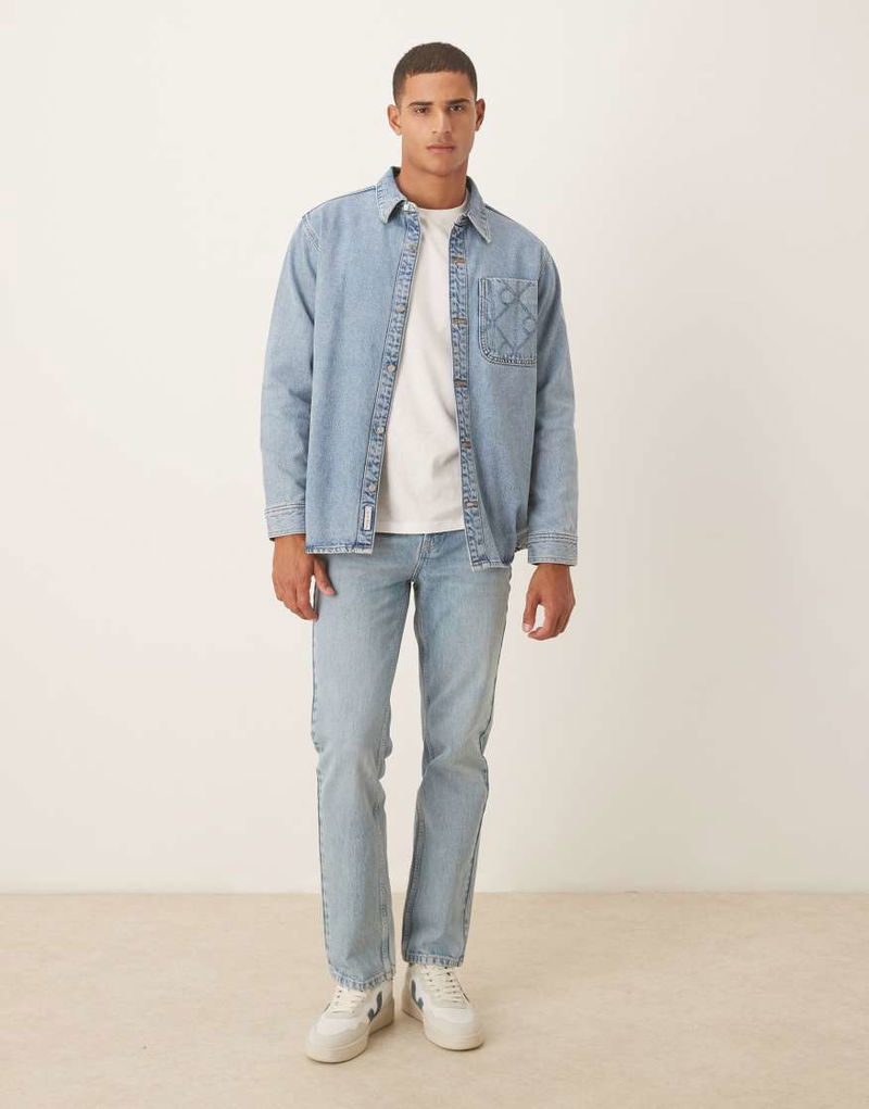 Jeans 90s Denim Overshirt With Logo Pocket Details In Stone Wash