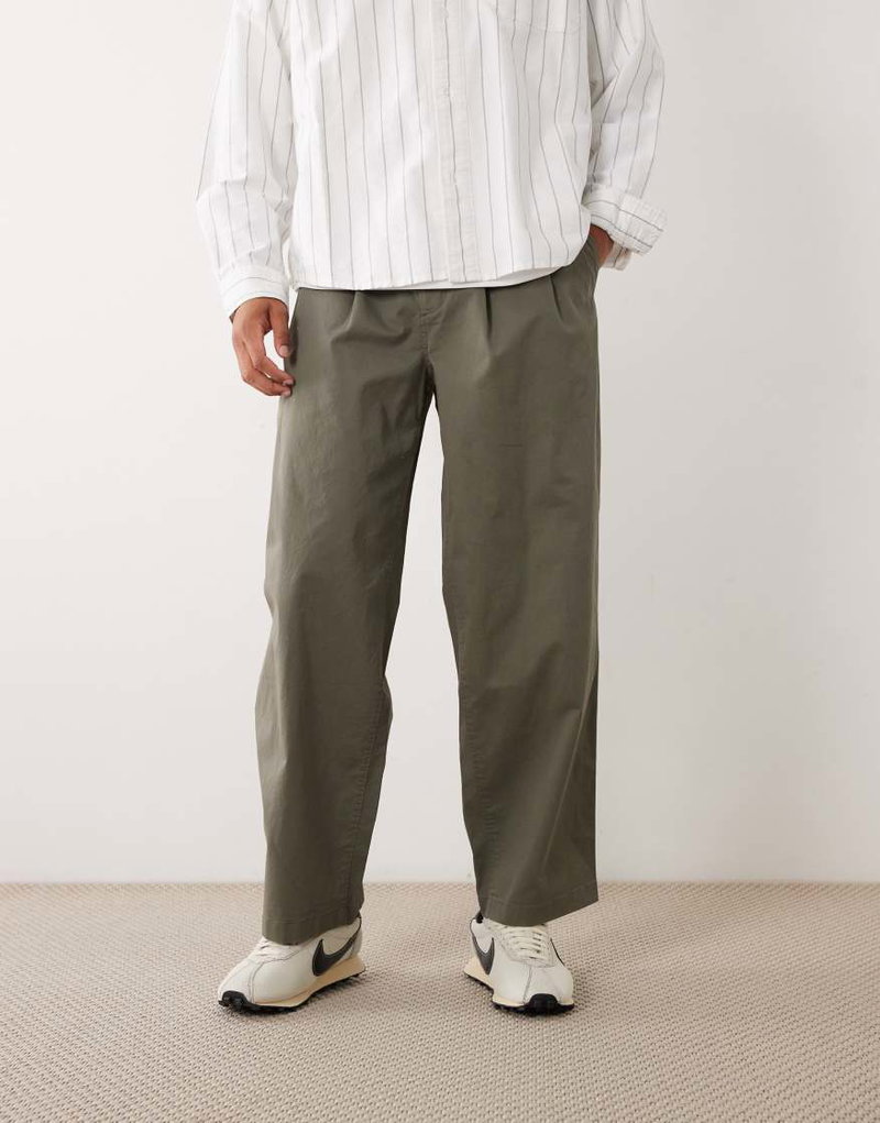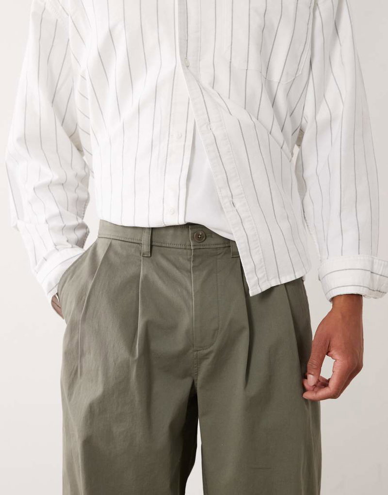 Jeans Cotton Trousers With Front Pleat In Olive
