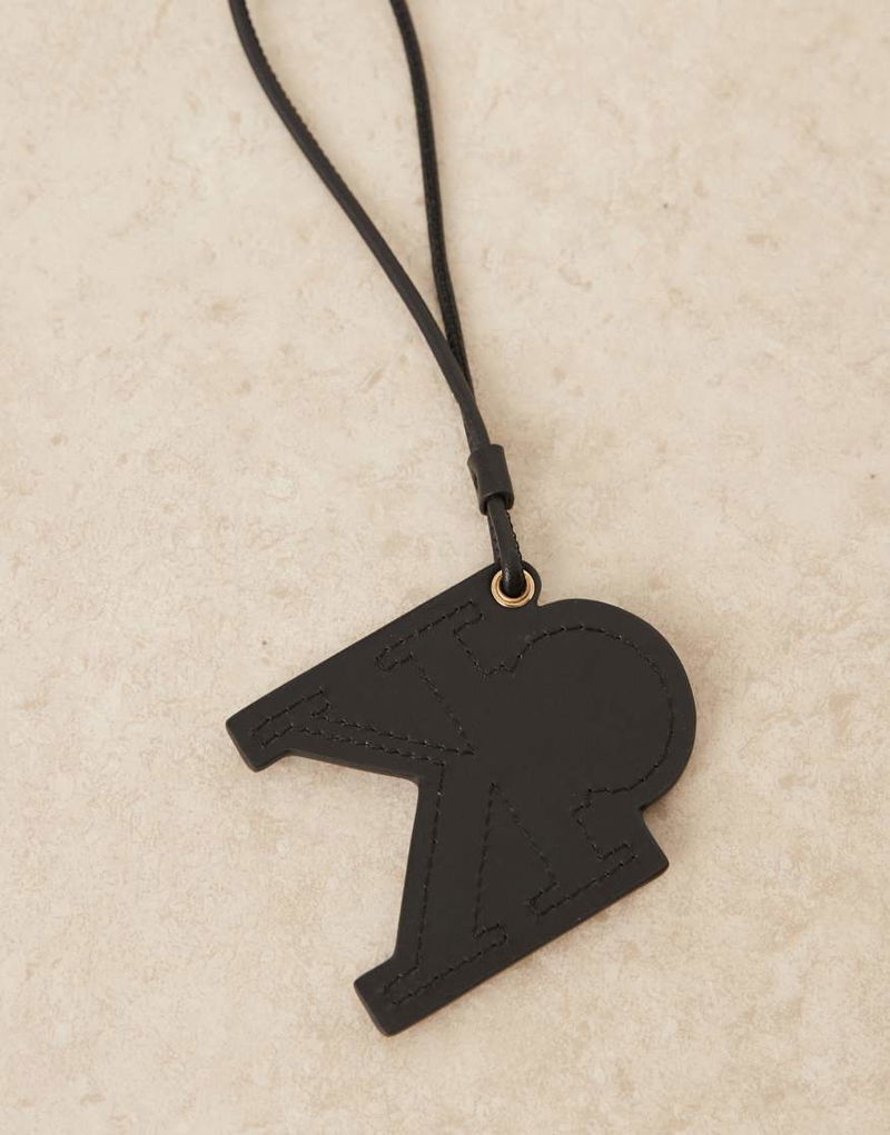 Jeans Embossed Monogram Leather Bag Charm In Black