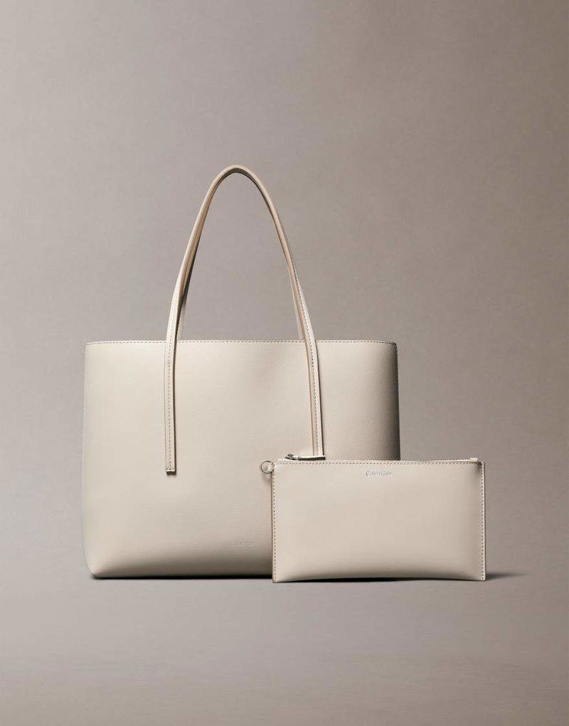 Jeans Foil Logo Small Tote Bag And Purse Set In Beige