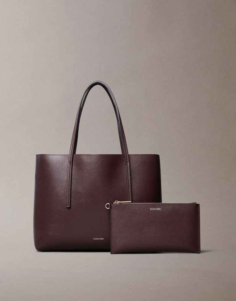Jeans Foil Logo Small Tote Bag And Purse Set In Burgundy