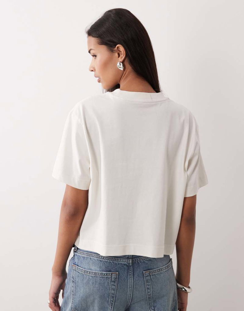Jeans Handwriting Graphic Boxy Cropped T-shirt In Cream