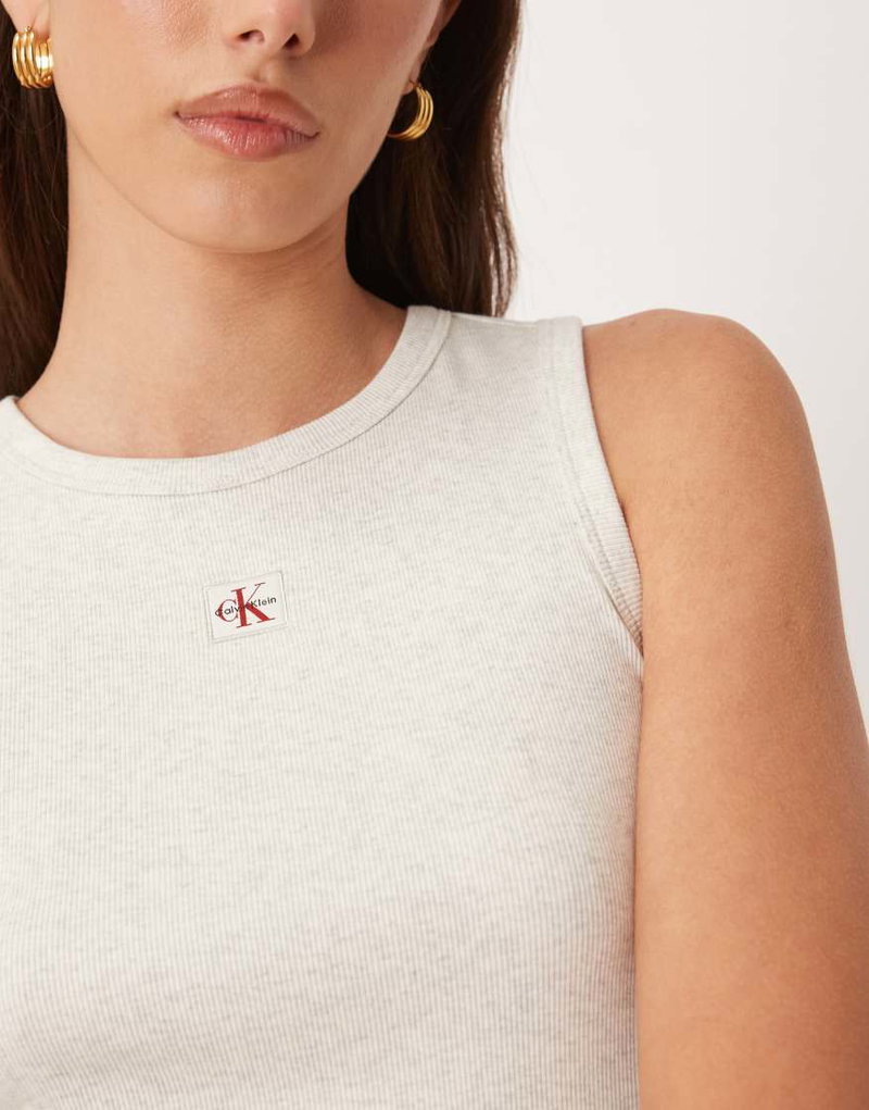 Jeans Monologo Ribbed Cotton Tank In Grey