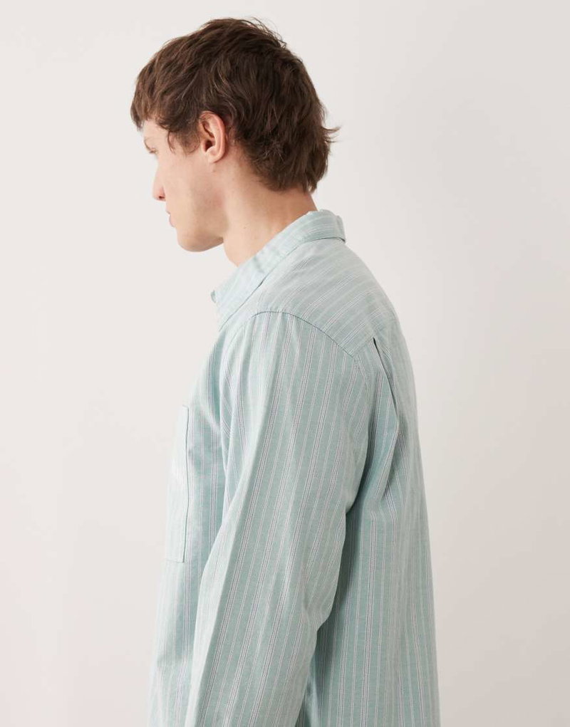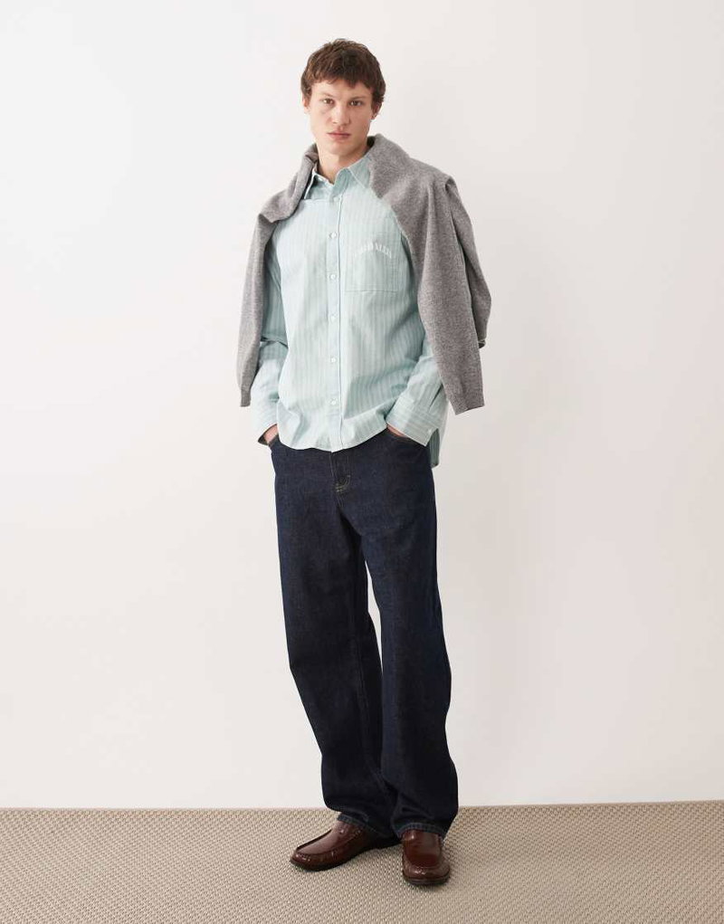 Jeans Oxford Shirt In Pale Blue Pinstripe