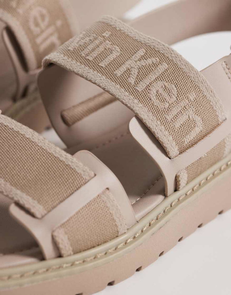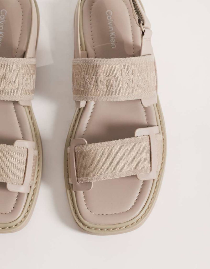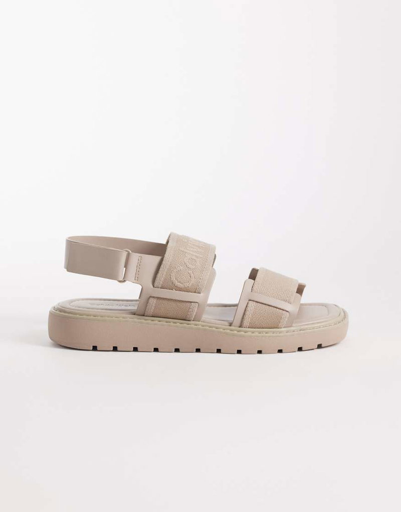 Jeans Webbed Square Toe Molded Sandals In Beige