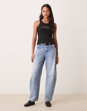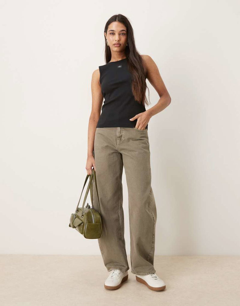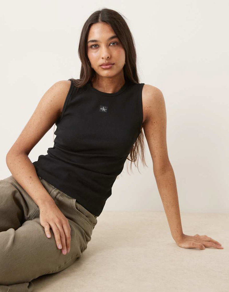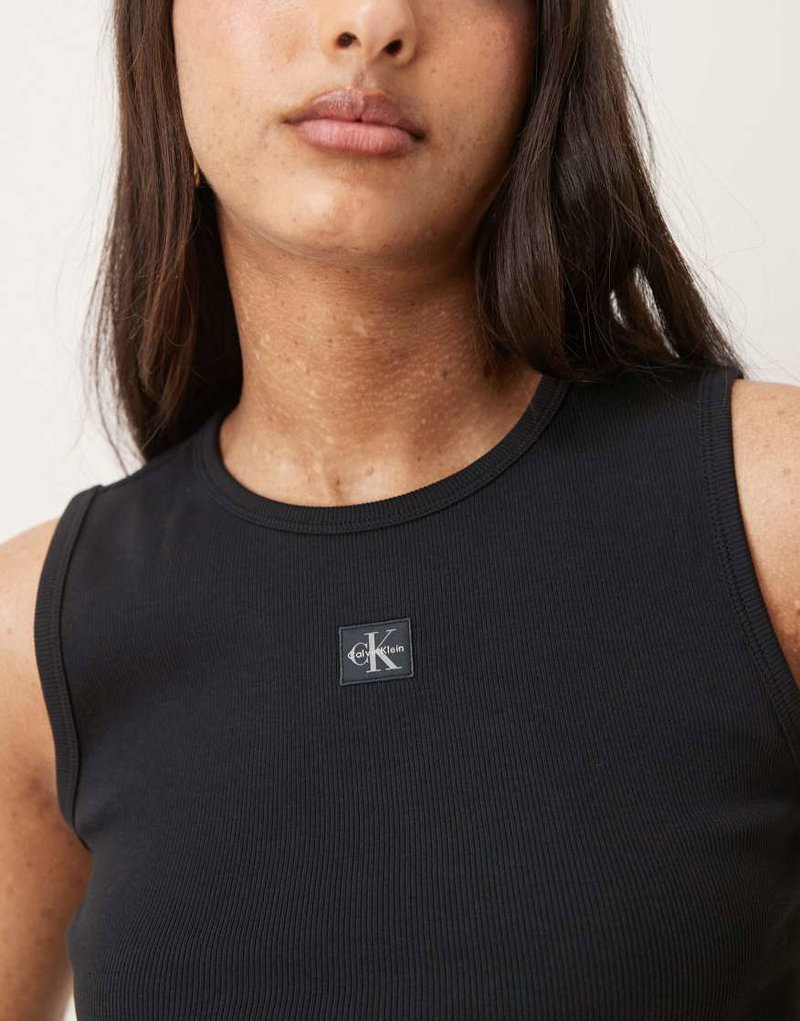 Jeans Woven Label Rib Tank Top In Black