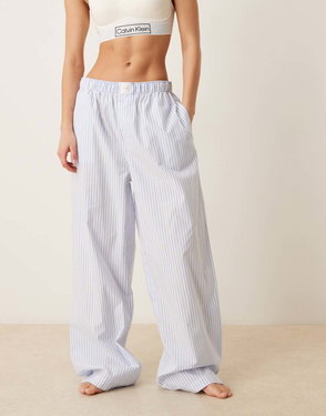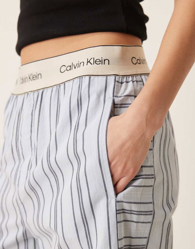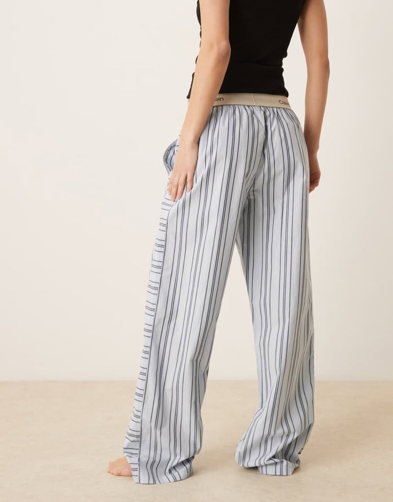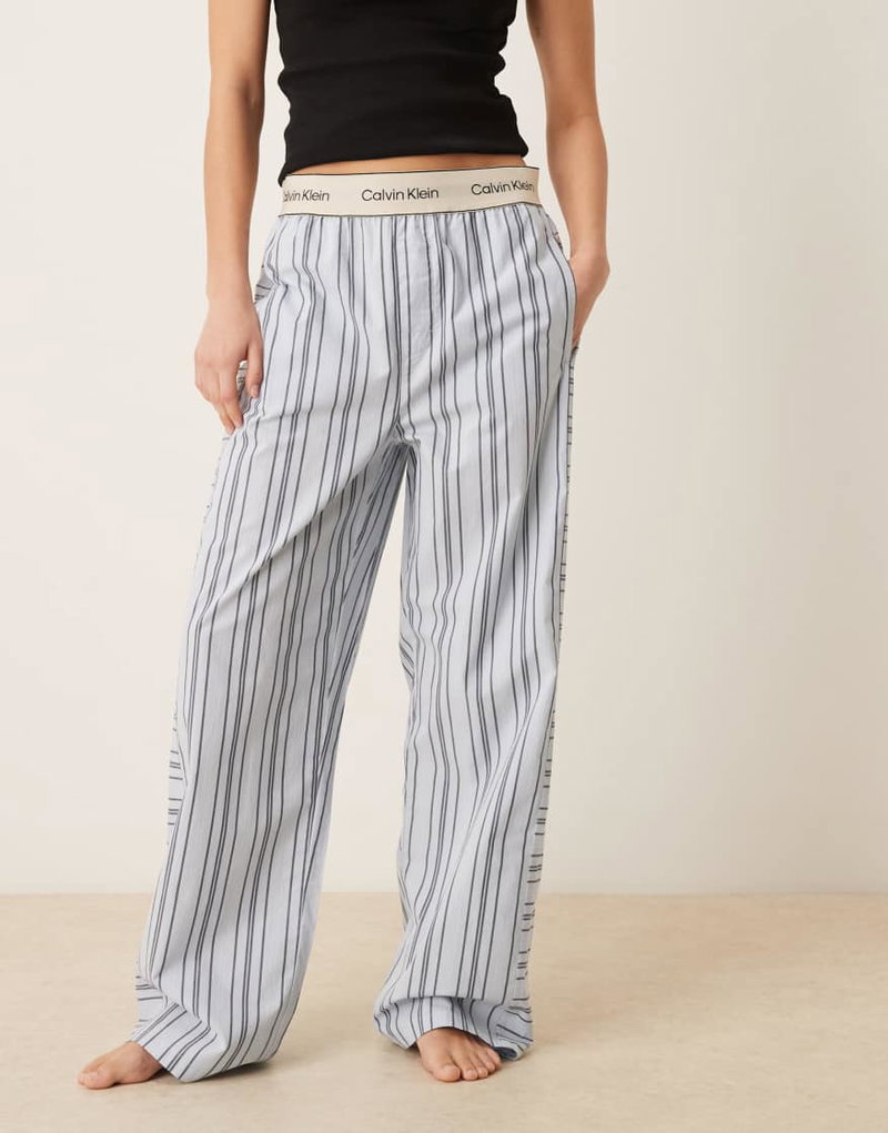 Logo Waistband Heritage Cotton Pajama Pants In Blue Stripes