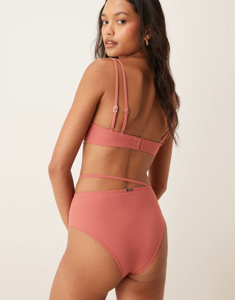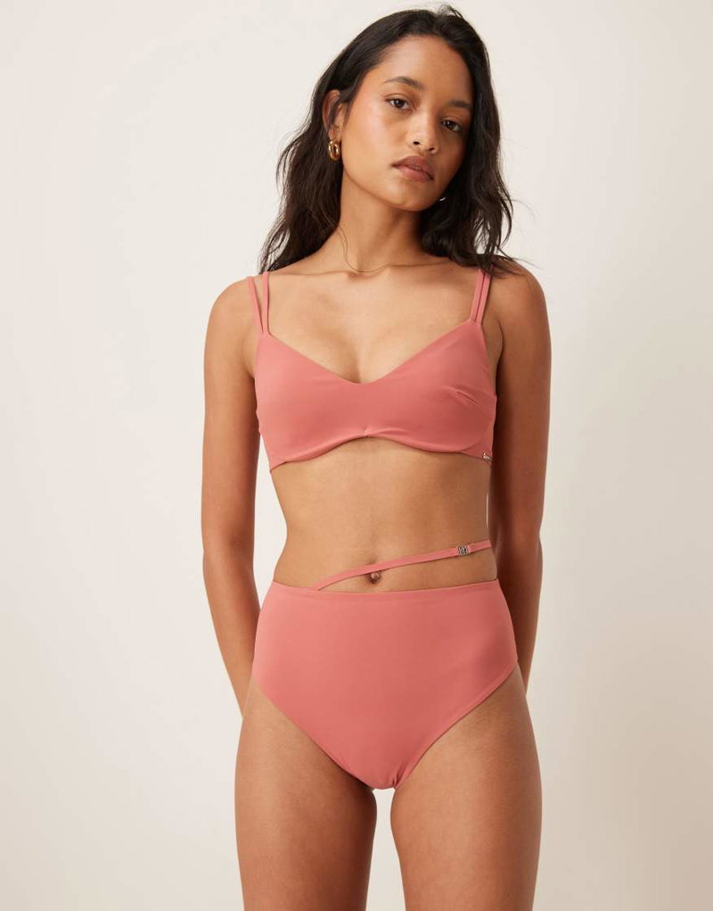 Luxe High Waisted Belted Bikini Bottoms In Pink