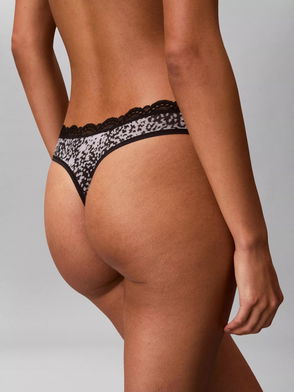 Microfiber Lace Thong In Black