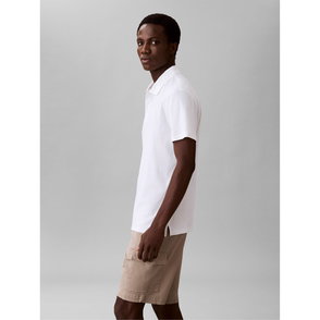 This cotton-knit polo shirt combines soft texture with a classic silhouette for easy yet elevated style. pure cotton knit waffle texture polo collar with four-button placket rib-knit cuffs and hem Calvin Klein logo tab at the hem easy, more relaxed fit short sleeves