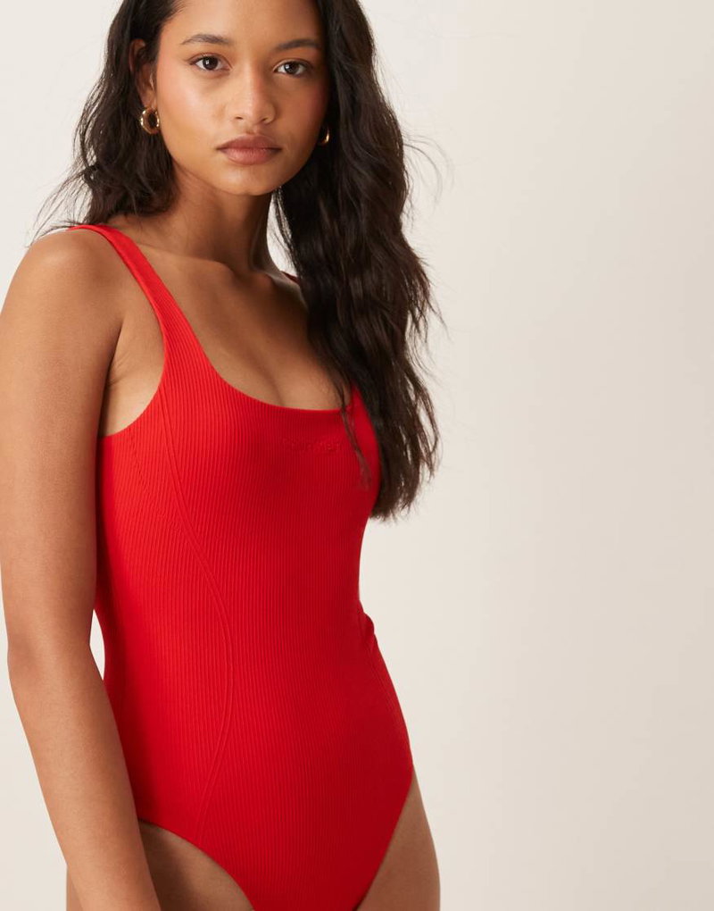 Shapewear Ribbed One Piece Swimsuit In Red