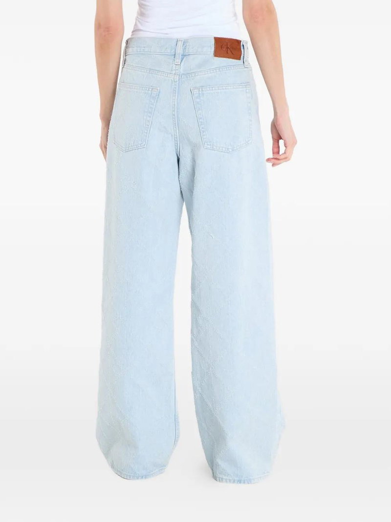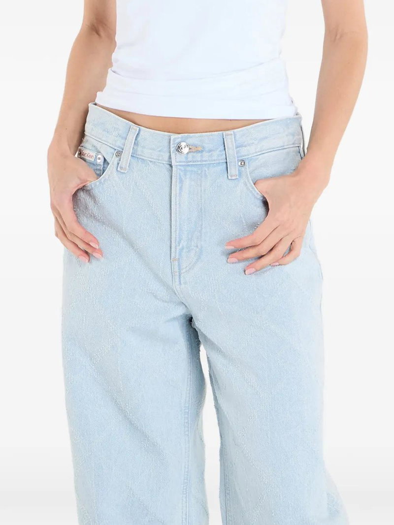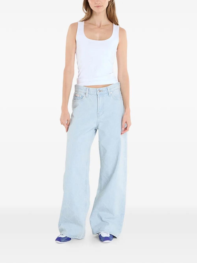 Blue front button and zip fastening classic five pockets belt loops wide-leg.