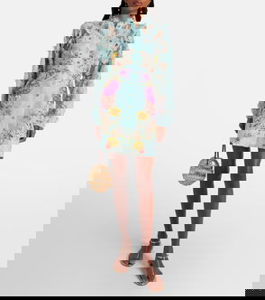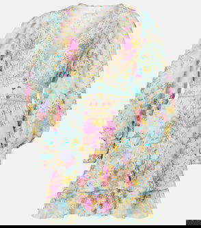 Floral-appliqué Gathered Silk Crêpe Minidress