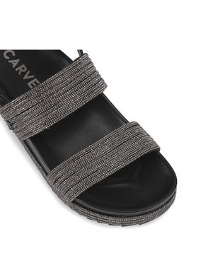 From Carvela, these Estella flatform sliders are presented with a metallic fabric upper embellished with bronze crystals across the wide strap.
