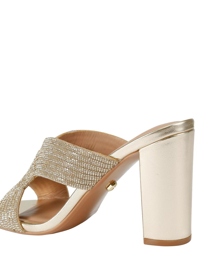Paparazzi Crystal Embellished Block Heel Sandals, Gold