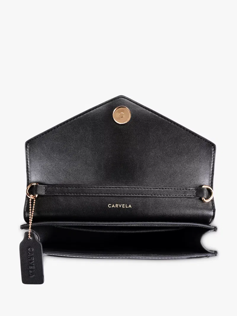 Offering comfort and functionality, this practical crossbody bag is designed by Carvela. Timeless thanks to its premium leather construction, it secures with a magnetic closure and keeps your bits and pieces in order with its internal slip pocket.