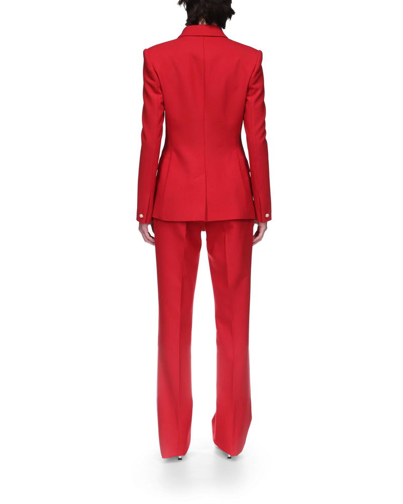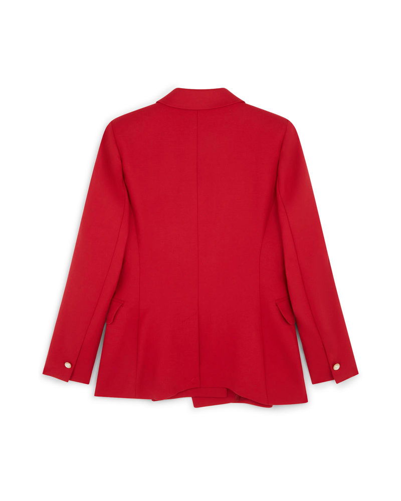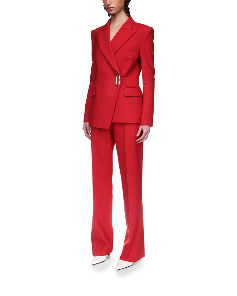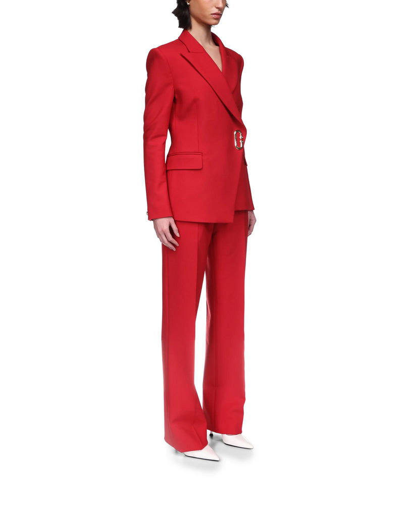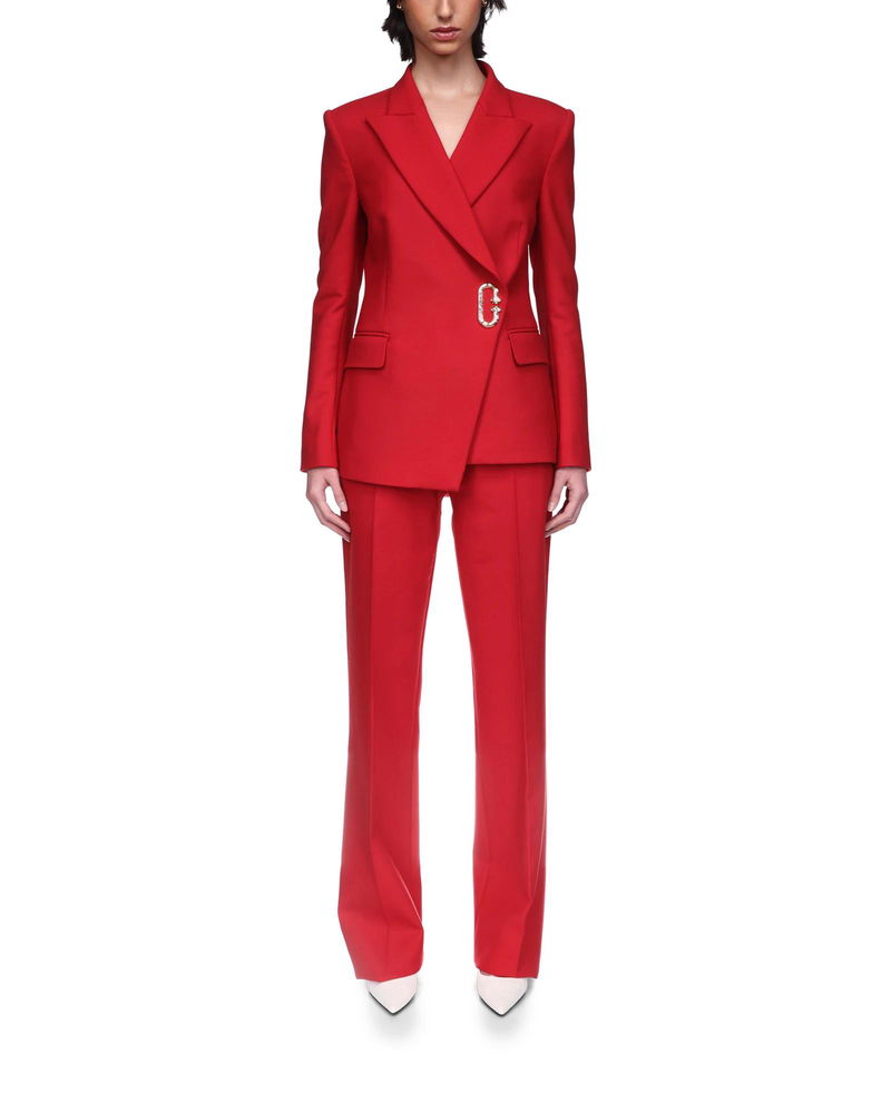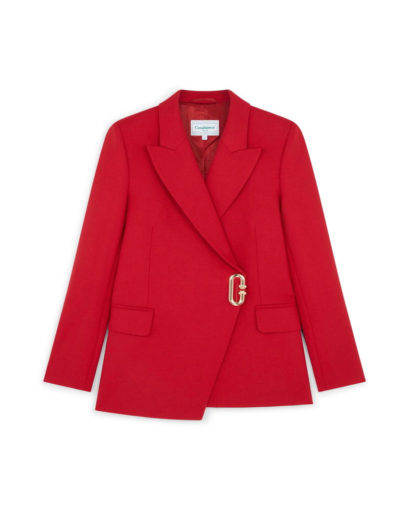 The asymmetric double-breasted jacket is a long sleeve design crafted from a sports tailoring wool blend fabric. Completed with this season's ancient Greece inspired gold-plated C column pin, peak lapels, a back vent, flap pockets, and an asymmetric hem-line. Wool blend fabric 94% virgin wool 5% lycra 1% polyamid Lining: 52% viscose 48% cotton Colour: red Specialised dry clean only Made in Portugal Fit true to size, take your regular size The model is 177cm/5'10 and is wearing a size S Asymmetric Double Breasted Jacket, Size 40(12UK) by Casablanca Paris