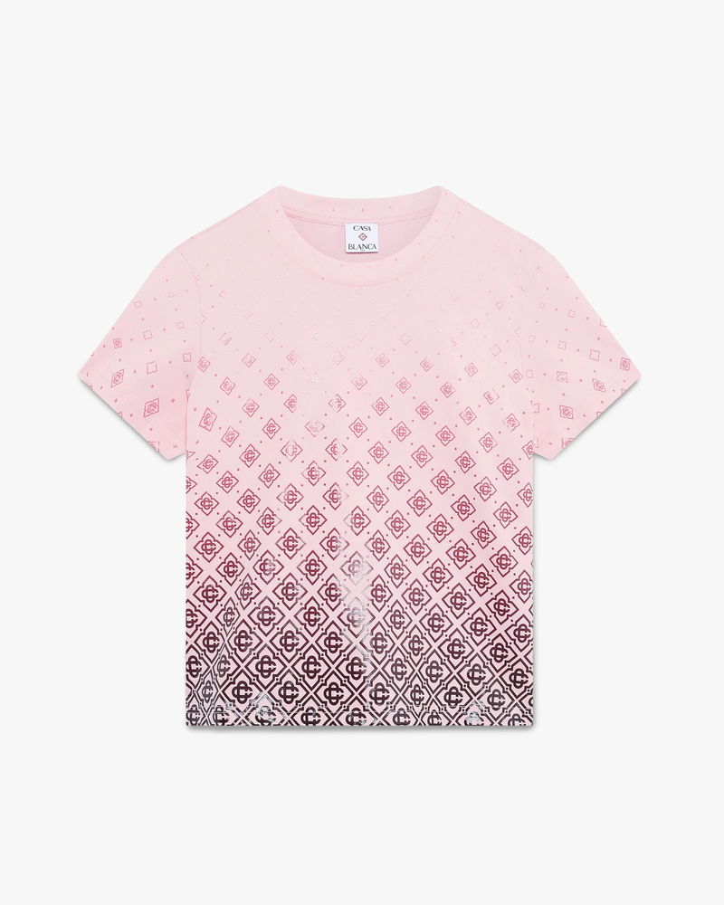 The pink gradient monogram short-sleeve t-shirt is a refined design, featuring the season's gradient artwork emulating the rich colours from the aubergine with the house's signature monogram. Completed with a classic crew neckline and a relaxed silhouette. Monogram printed jersey fabric.