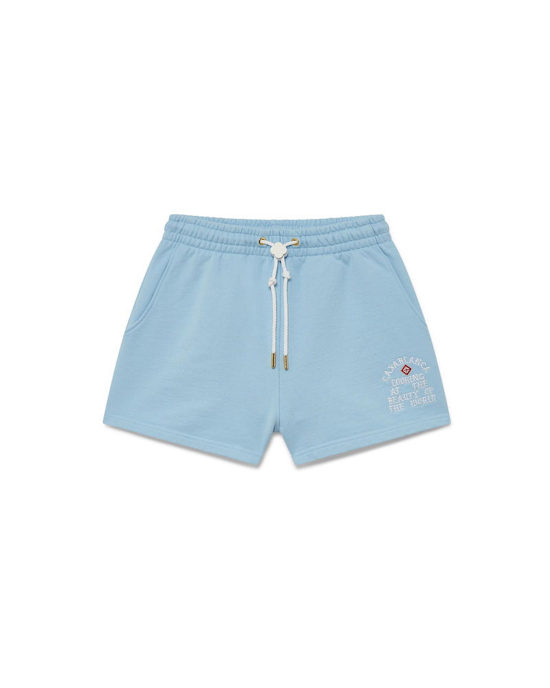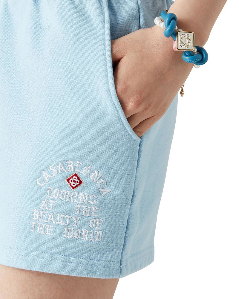 The Beauty of the World sweatshorts are a sportswear design crafted from organic cotton fabric and feature the Casablanca brand's motto in gothic typography inspired by LA street culture.