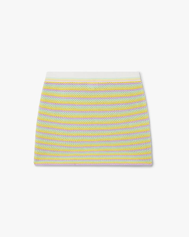 The Bourgeois striped mini skirt is a refined A-line knitted design featuring the house's warped logo. Completed with an elasticised waistband with rib detailing, and elegant stripe detailing throughout. Knitted cotton fabric.