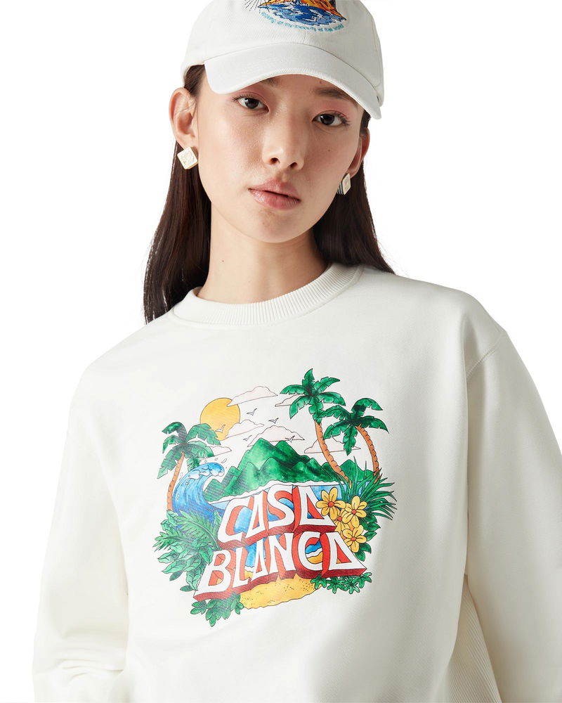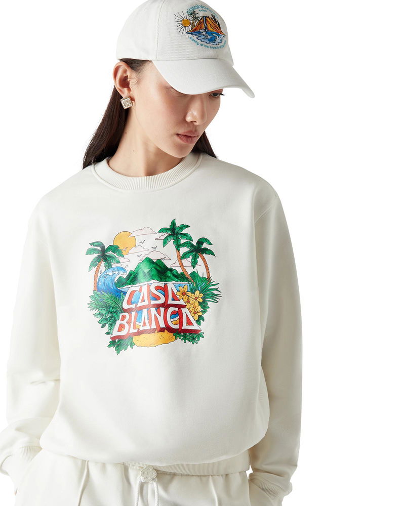 The Casa Beach Wave sweatshirt is a long-sleeve printed design crafted from organic cotton fabric and features signature artwork referencing a souvenir t-shirt one would buy on a beach holiday. Completed with a classic crew neck.