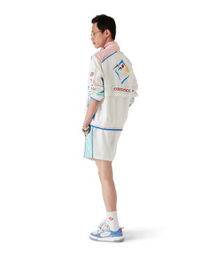 The Casa Sportif windbreaker shorts are a sportswear design crafted from a technical fabric, displaying the season's artwork inspired by Japan. Completed with an elasticised waistband, drawstring fastening, and in-seam side pockets.