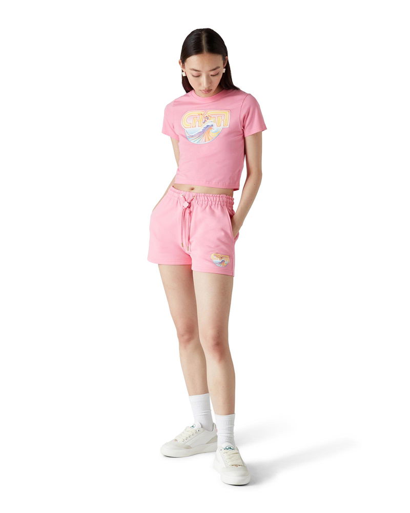 The Casa Surf sweatshorts are a printed design crafted from organic cotton fabric and features signature artwork inspired by vintage sun-faded surfboards from the '70s.