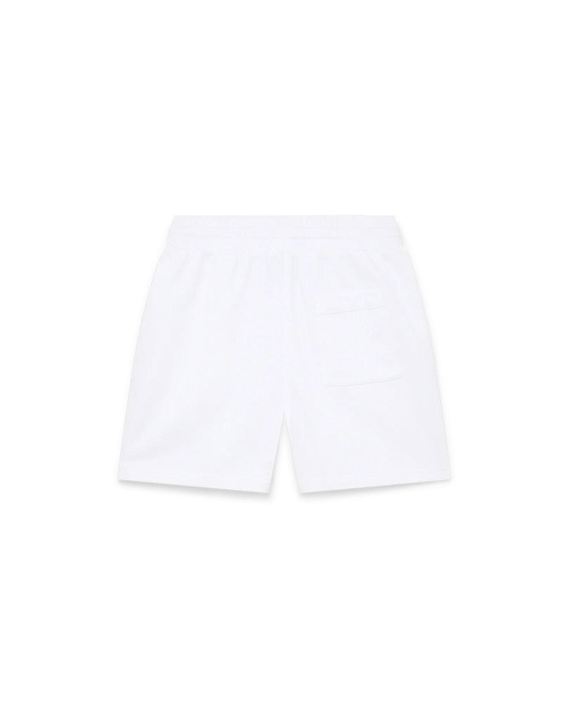 Made of 100% organic cotton, the short style falls above the knee and is finished with gold-tipped drawstring fastening and side pockets.