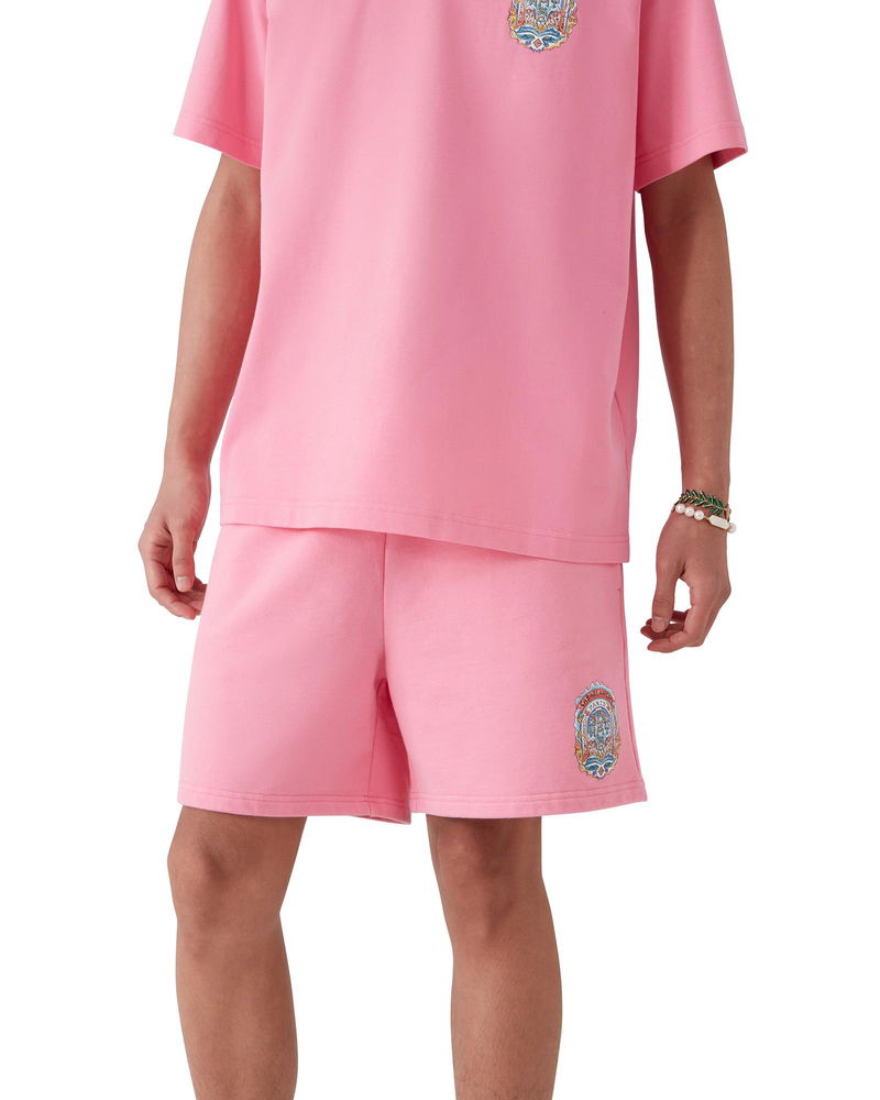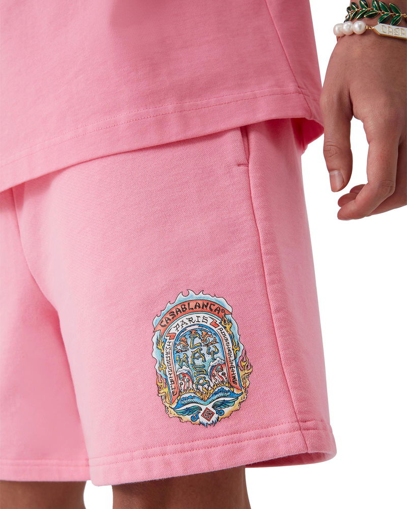 The Gothic Logo sweatshorts are a sportswear design crafted from organic cotton fabric and feature the gothic stacked logo with gothic typography inspired by LA street culture. Completed with an elasticated waistband, a gold-tipped drawstring fastening, slanted side pockets and a patch back pocket. Cotton loopback jersey fabric 100% organic cotton Colour: pink Delicate machine wash Made in Portugal The model is 187cm/6'1 and is wearing a size M Casa Way Skate Sweatshorts, Size XS by Casablanca Paris