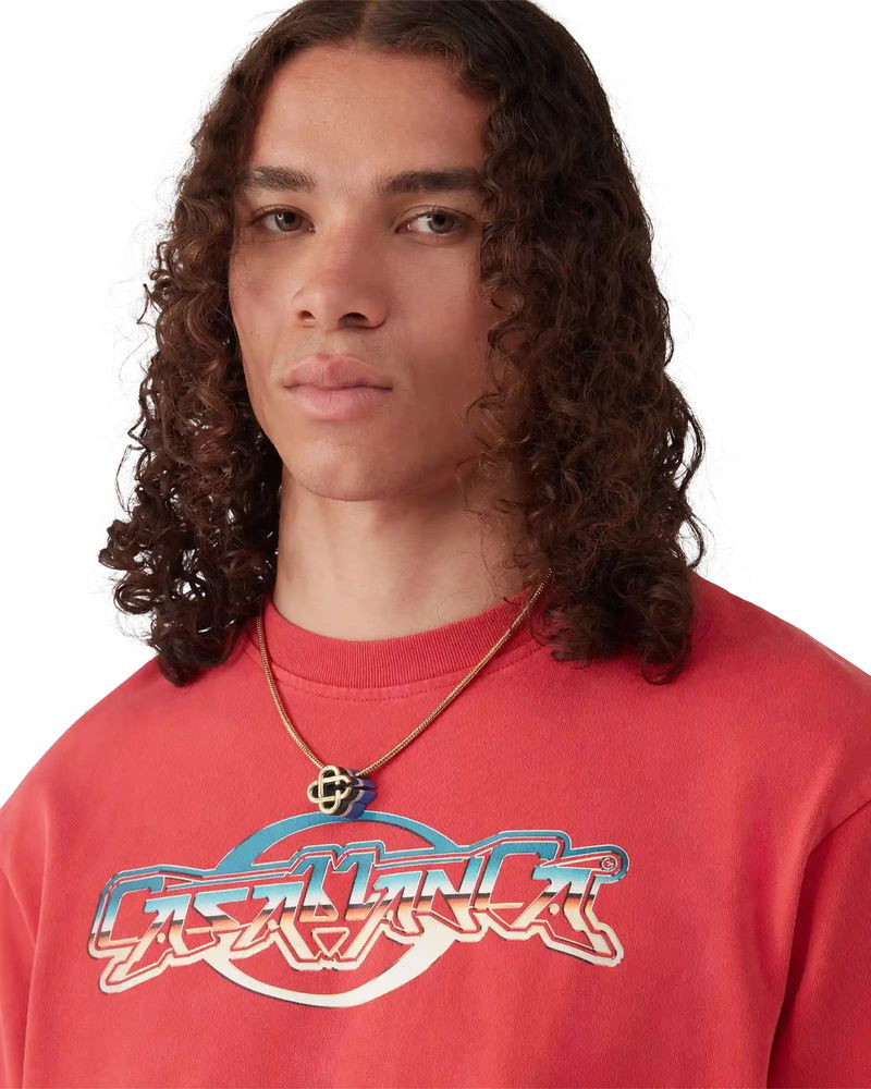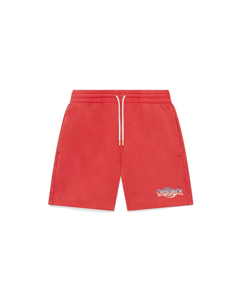 The Chrome sweatshorts are a sportswear design crafted from organic cotton fabric featuring the chrome text Casablanca logo. Completed with an elasticised waistband, gold-tipped drawstring fastening, in-seam pockets, and a back patch pocket. Cotton loopback jersey fabric Main: 100% organic cotton Lining: 100% organic cotton Colour: red Delicate machine wash Made in Portugal The model is 187cm/6'1 and is wearing a size M Chrome Sweatshorts, Size XS by Casablanca Paris