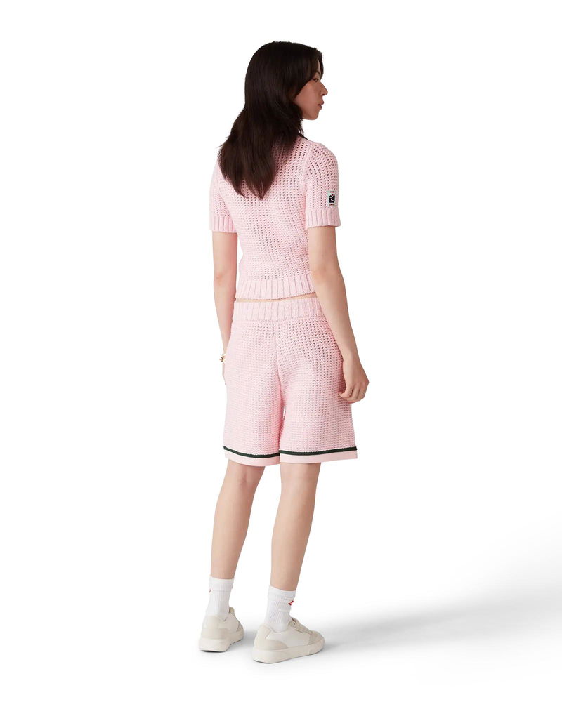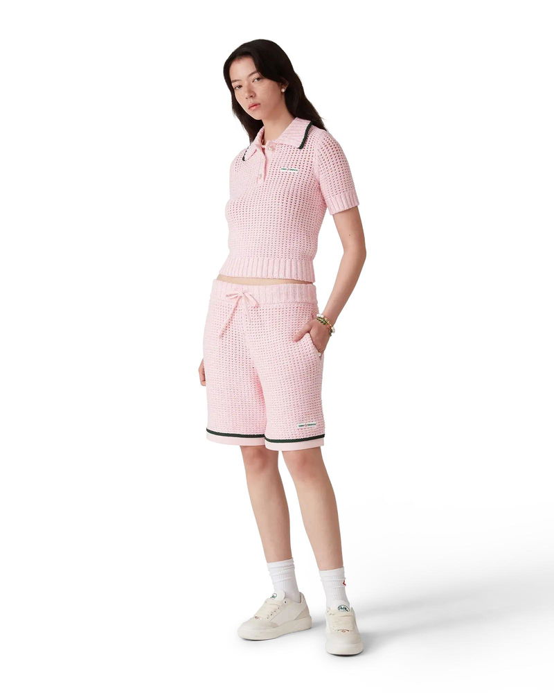 The cotton mouliné polo shorts are a sportswear design crafted from mouliné cotton fabric. Completed with an elasticised waistband, drawstring fastening, slanted front pockets, a back pocket, and hem detail.