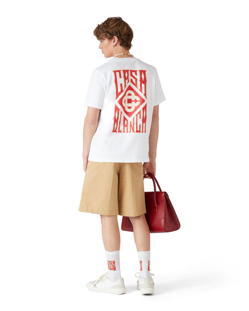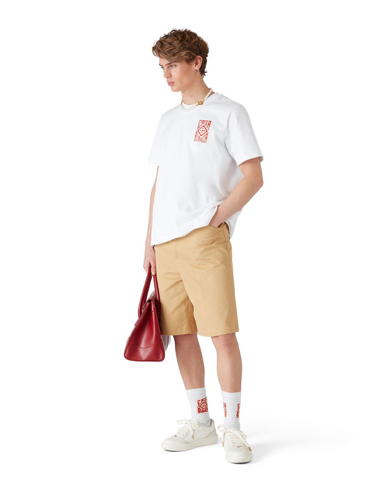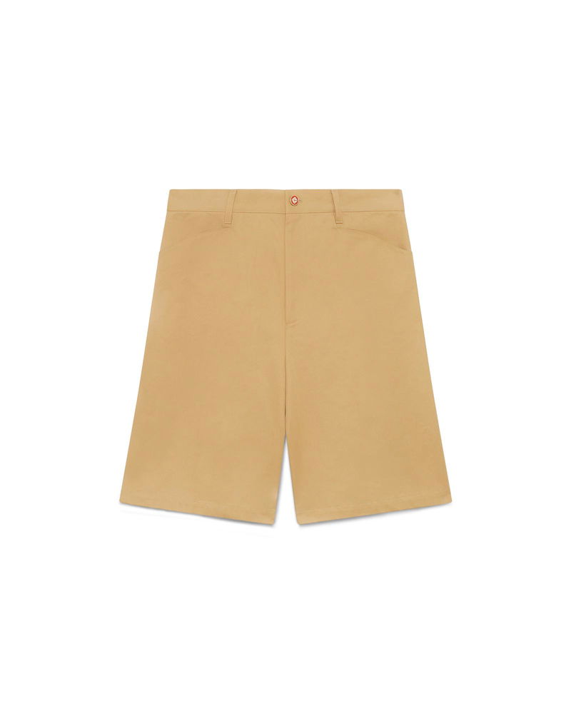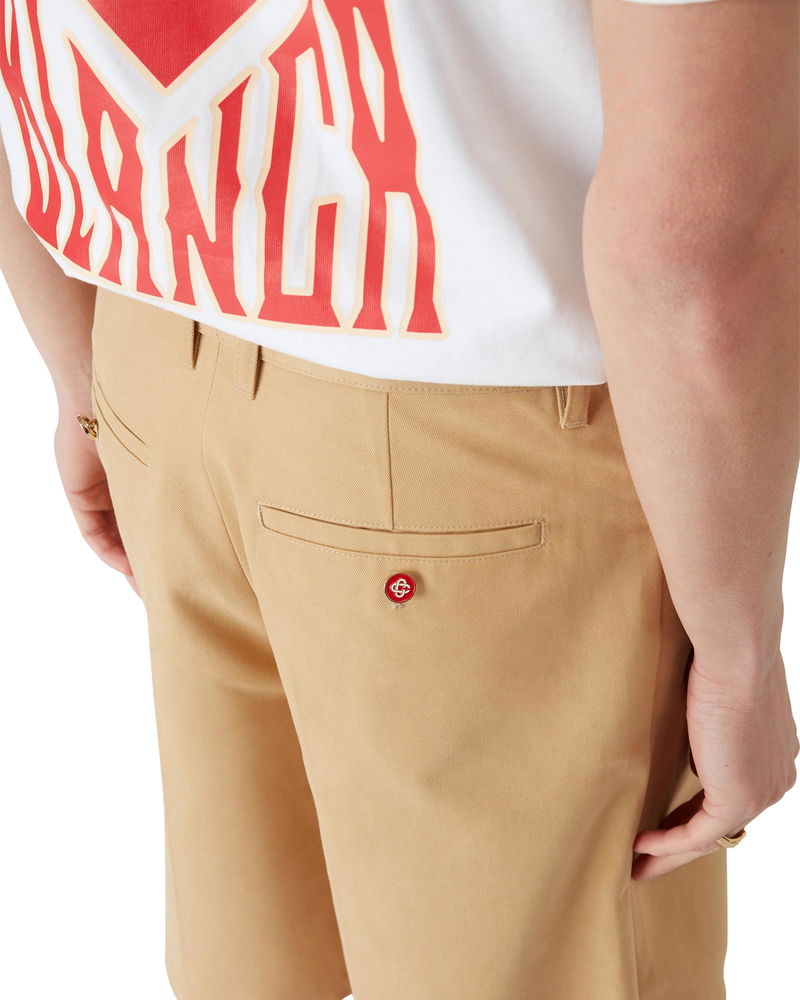 The cotton pleated shorts are a relaxed design crafted from cotton fabric and feature a cotton lining. Completed with belt loops, a zip closure, front pockets, and welt back pockets with interlocking CC logo gold rim enamel button closure. Cotton twill fabric Main: 100% cotton Lining: 100% cotton Colour: white Specialised dry clean only Made in Portugal The model is 186cm/6'1 and is wearing a size M Cotton Pleated Shorts, Size 44 by Casablanca Paris