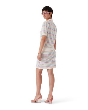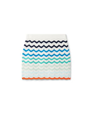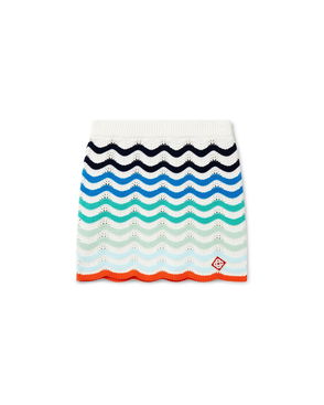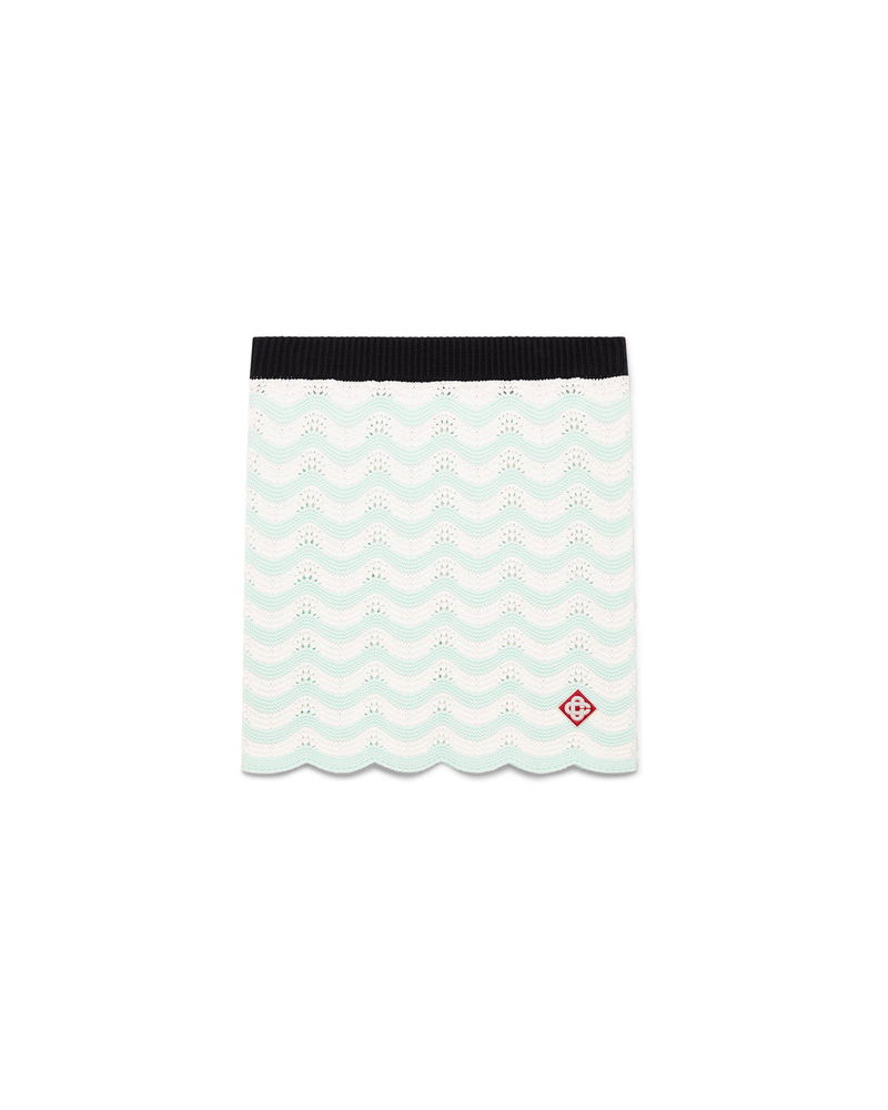 The cotton wave crochet mini skirt is a fitted design featuring the house's signature diamond logo crafted from crochet cotton fabric. Completed with a black contrast elasticised waistband and wave-inspired hemline.