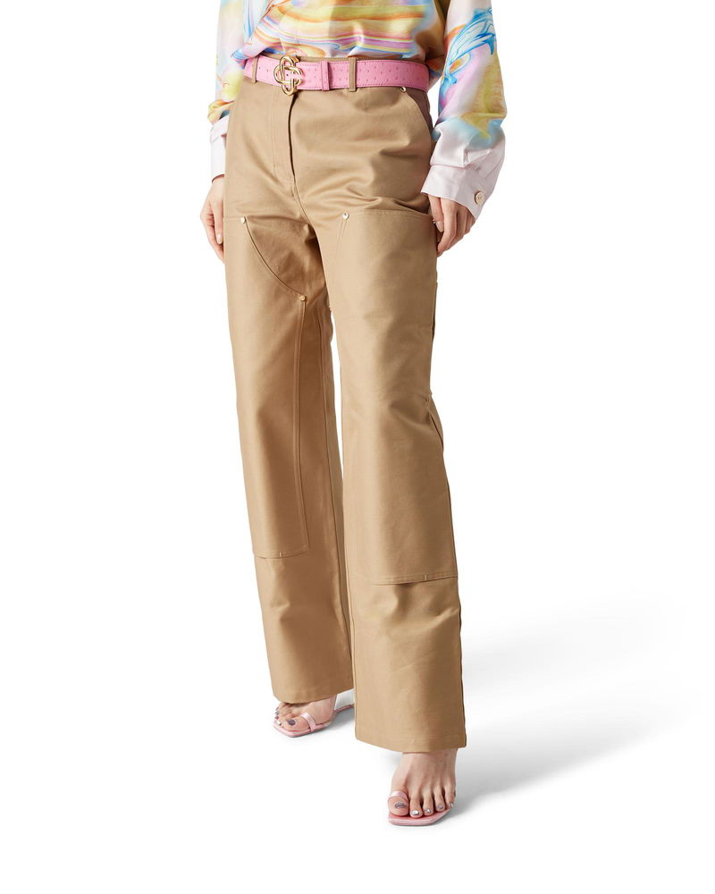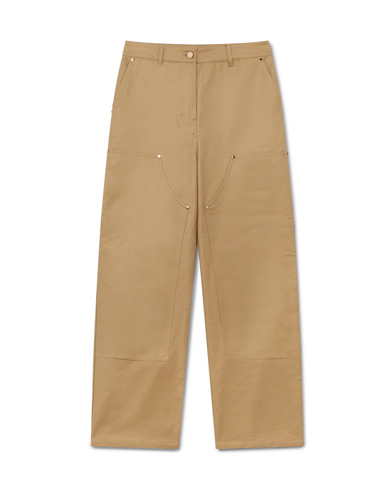 The cotton workwear trousers are a straight-leg design crafted from cotton drill fabric.