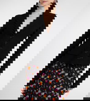 Completed with a button closure, a signature gold rim pearl button, flap front pockets, a back vent, lapels, and a lining.
