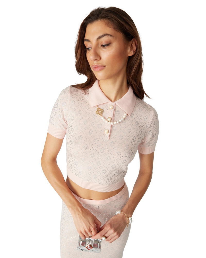 The crystal monogram knit polo shirt is a cropped design crafted from merino wool fabric and features the house's crystal monogram.