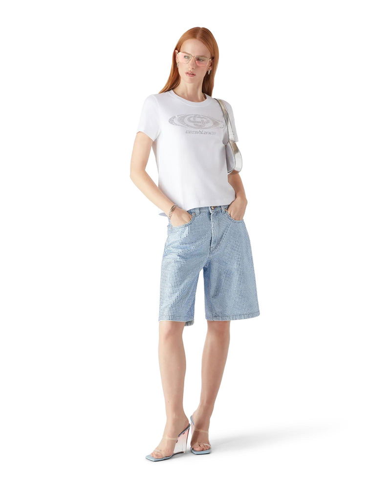Crystal Warped Logo Fitted Short Sleeve T-Shirt